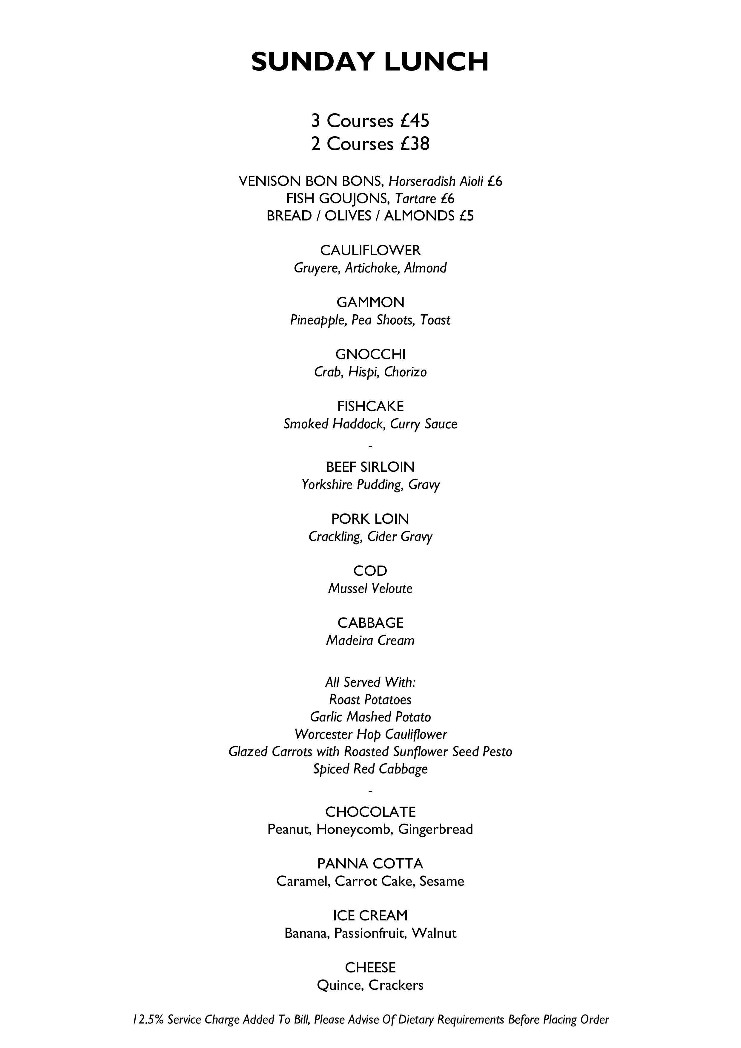 SUNDAY LUNCH MENU